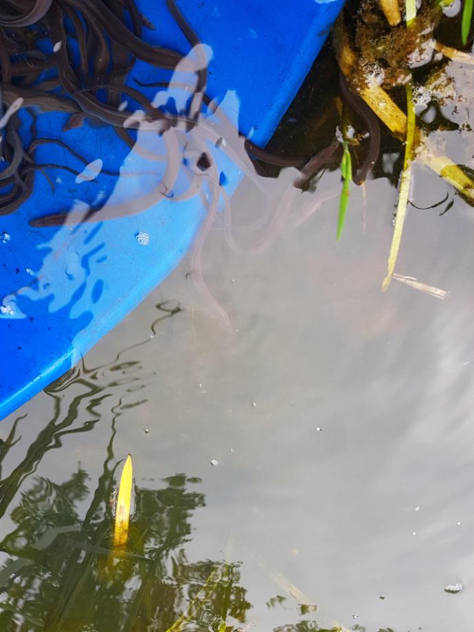 Die Witterung trug mit bewölktem Himmel und 15°C wie im Vorjahr mit dazu bei, dass die Aale ihr Ziel sicher erreichten.