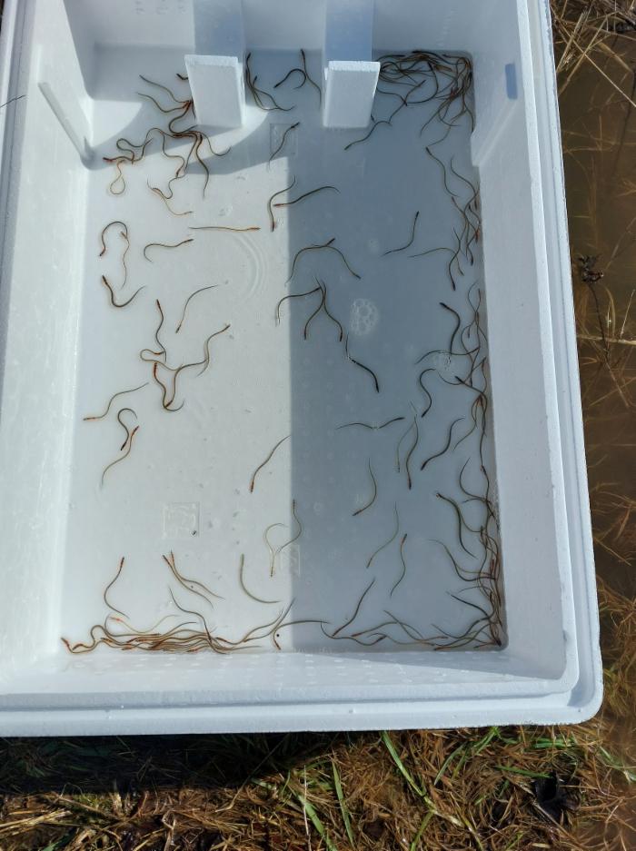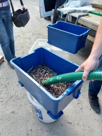Mit dem Besatz von 1360 kg (rd. 340.000 Stck.) Farmaal endete am 29.05.2021 die diesjährige geförderte Besatzaktion zum Schutz des europäischen Aals.