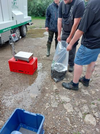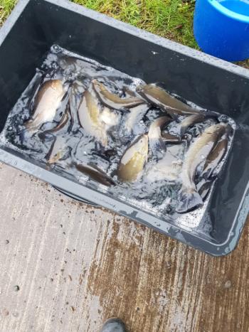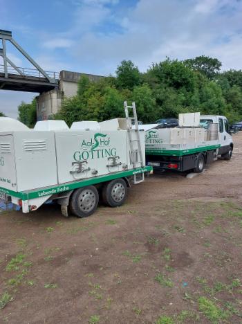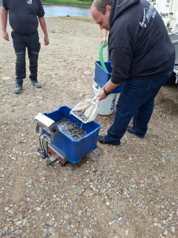 Am 4.6.2022 wurden im Bereich der Pachtgemeinschaft Weser IV insgesamt 1180 kg (rd. 295.000) Farmaale mit einem Durchschnittsgewicht von 4 g angeliefert.