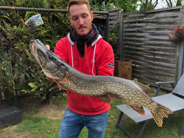 Ein starker Hechtrogner von 104 cm und 9 kg Gewicht konnte seinem Twister nicht widerstehen.