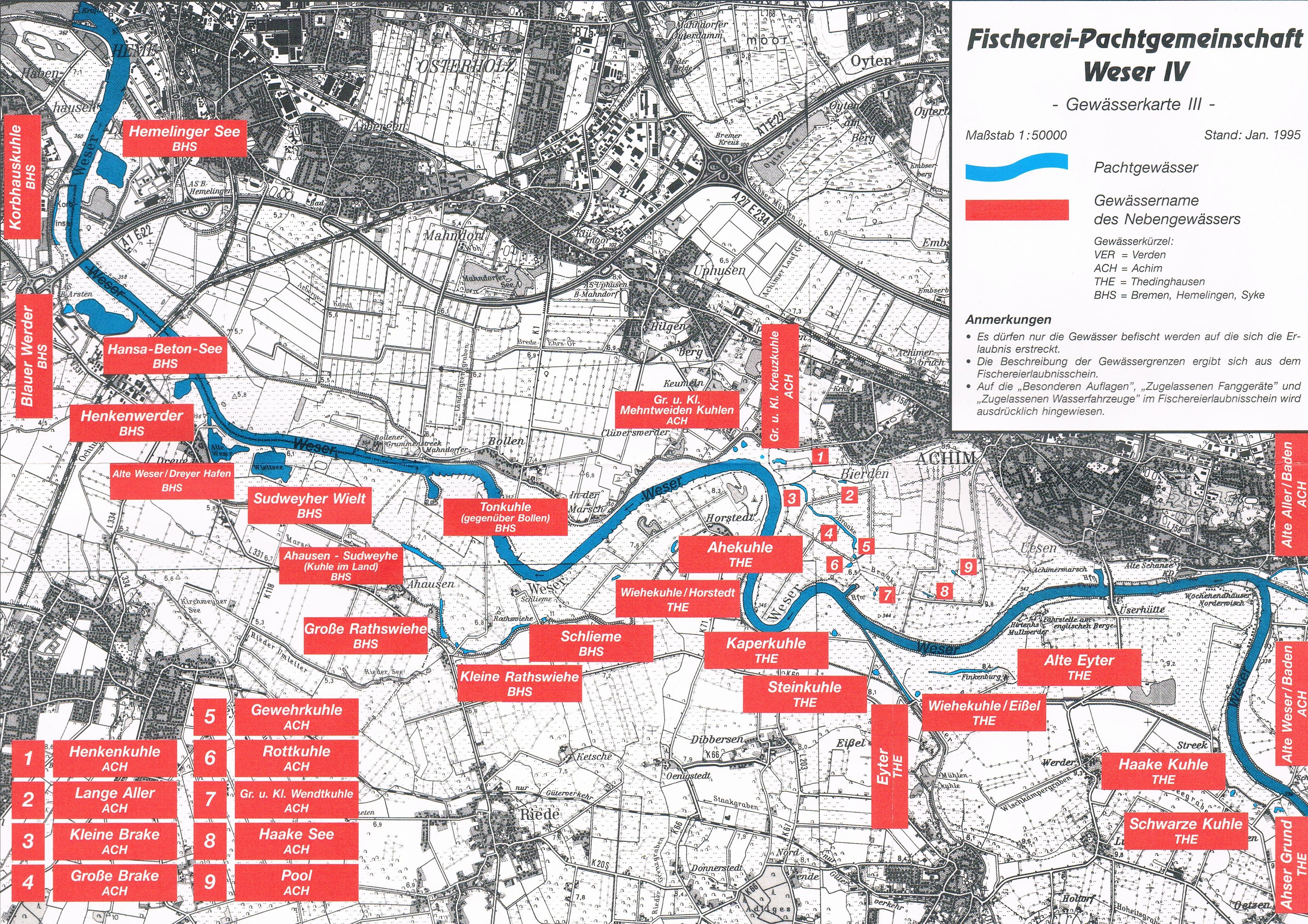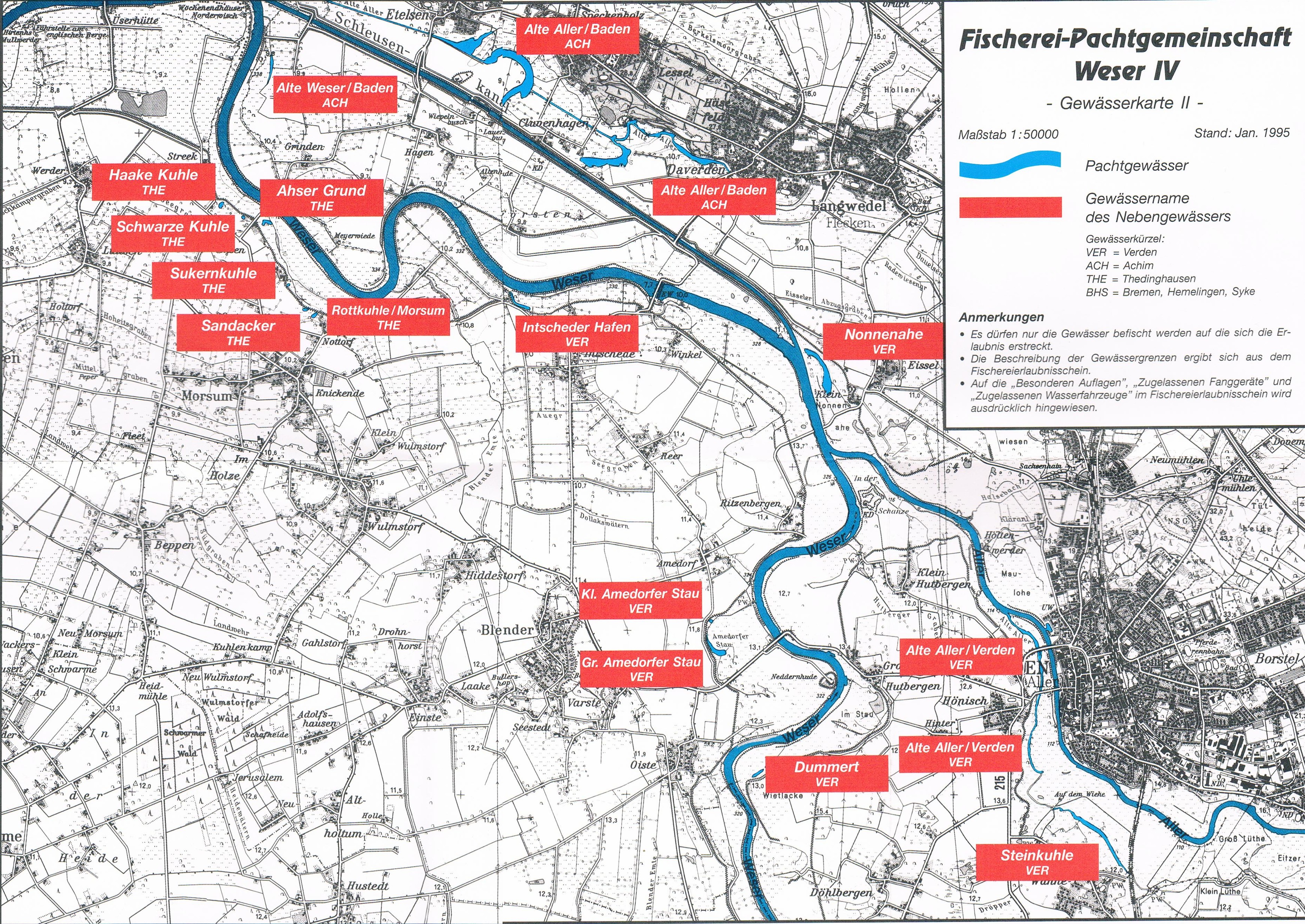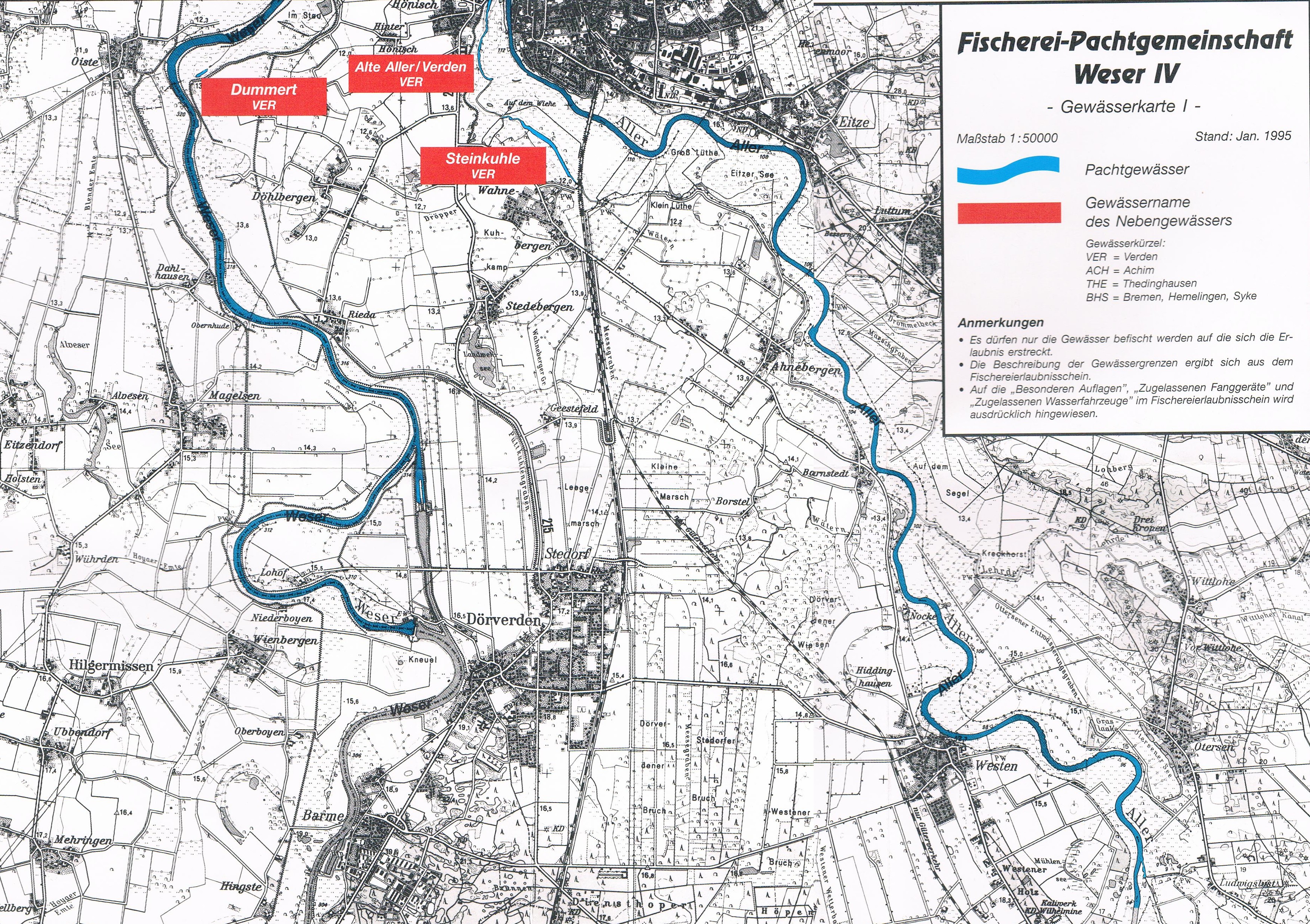 Neue Gewässer im Fischerei-Erlaubnisschein Pachtgemeinschaft Weser IV: